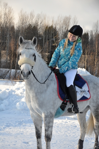 Erikan blogista: "Henni ratsasti aluksi Helkalla ja mun silmään Helka näytti tosi kivalta! Helka oli pirteä, mutta kuunteli ratsastajaa. Henni otti Helkalla kaikki askellajit, jonka jälkeen mie pääsin ratsaille. Taivuttelin ensin käynnissä molempiin suuntiin ja sen jälkeen ravissa. Lopuksi otin pikkaisen laukkaa ja Helka toimi kaikissa askellajeissa kivasti.Helka oli kokoajan niin reippaana, niin käytiin vähän laukkailemassa pellolla ja lähimaastoissa sellaisissa kohdissa, missä pystyi laukkaamaan. Helka oli täysin elementissään päästessään laukkailemaan ja niin olin minäkin, ainankin kuvista päätellen :D Vaihdeltiin maastossakin pari kertaa, niin että päästiin molemmat menemään Helkalla ja muutamien laukkojen jälkeen mie ravailin yhden tien edes-takas ja käveltiin takaisin tallille."